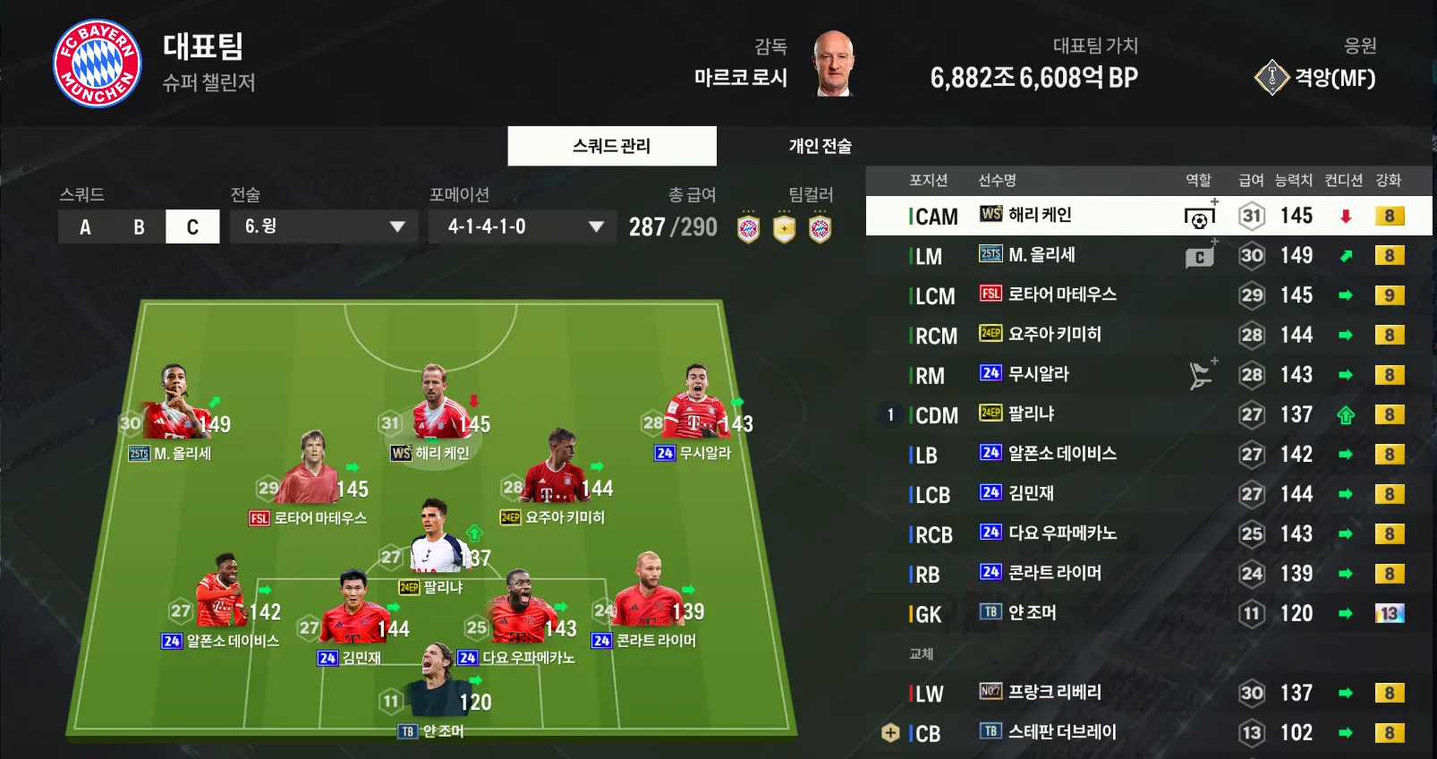 바꿔야될 선수있을까요? 요즘엔 뮌헨 유저분들 혹시 어떤 전술로 밀고 가시는지 추천 가능할까용!?