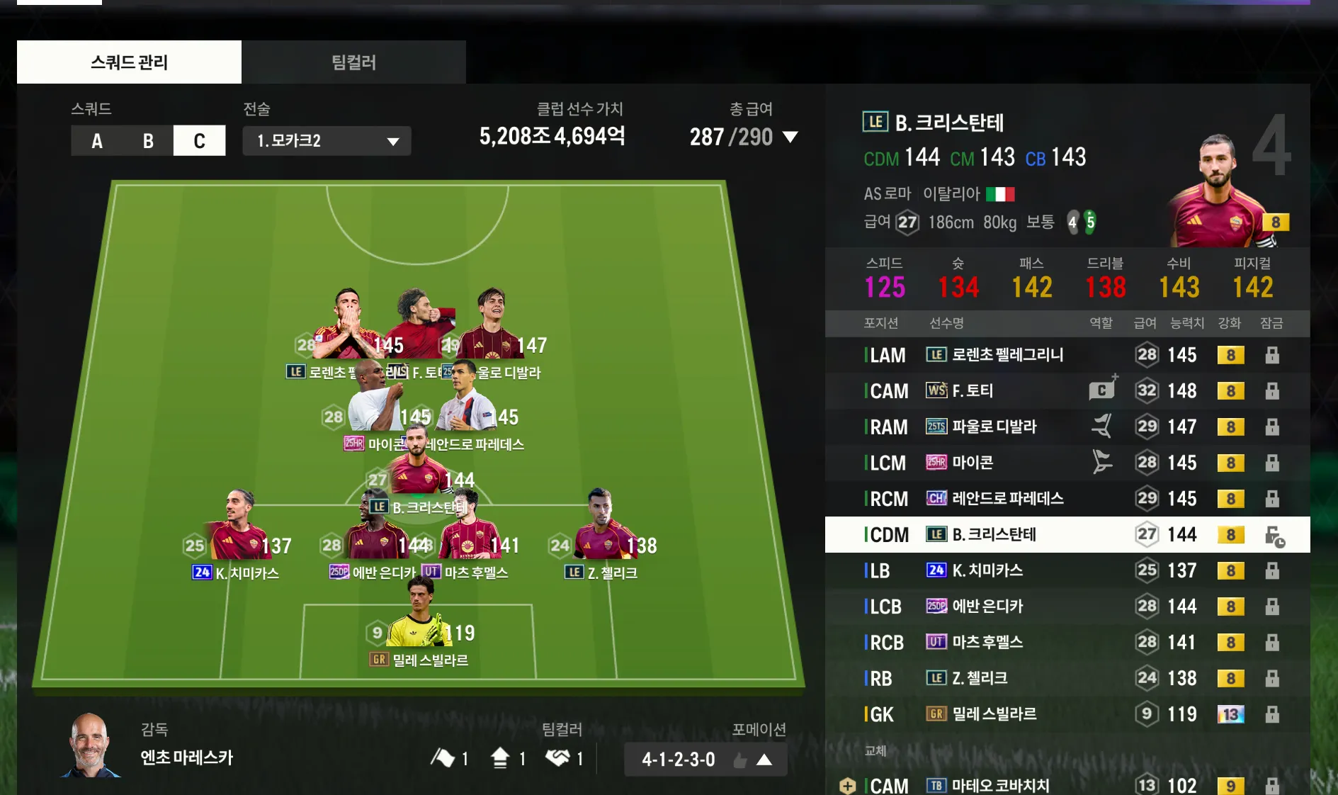 지금 탄테가 생각보다 지표가 안나오기도 하고 현역로마가 지금 팀컬러가 생각보다 좋게 나와서 은디카를 왼풀백으로 돌리고 만치니 사고 원볼에 마티치 살까 고민중인데 어떤가요