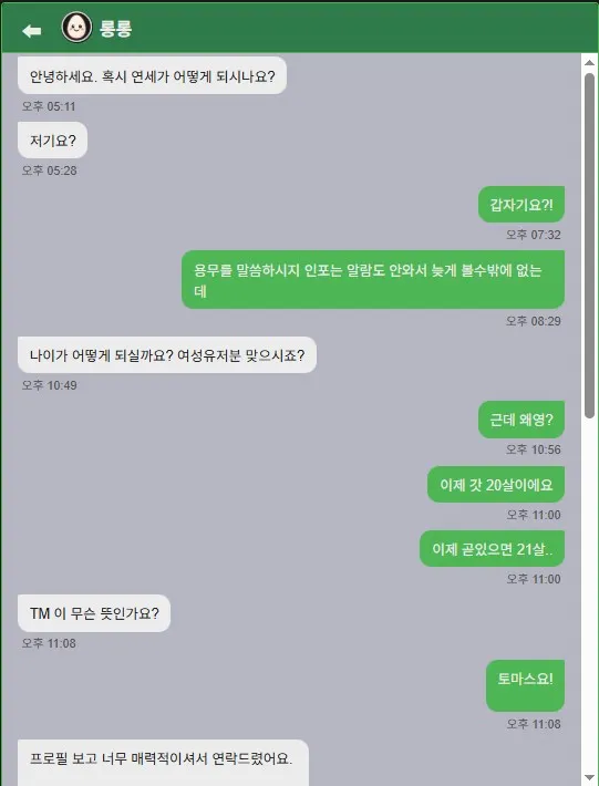 왠 물소가 닉넴만보고 쪽지를 주나 싶어서 20살 여대생이라고 구라 까고나서 보니 스폰제의,,ㅋㅋ